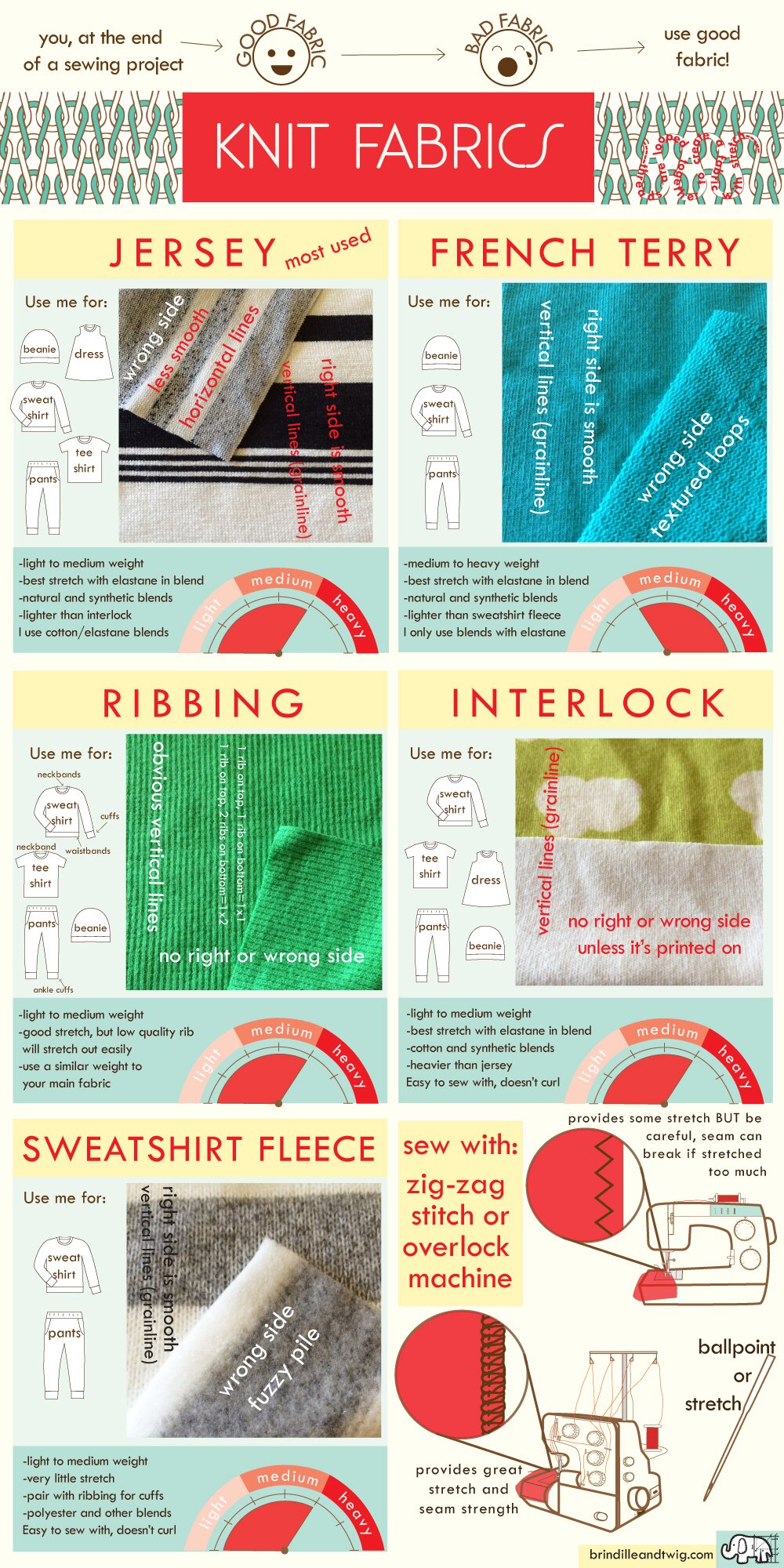 Beginners guide to knit fabrics Knit fabrics can be a bit confusing in the beginning. I hope this quick overview will help you understand the basics! Zoom in on the graphic to see it better.. Melissa2017-04-19T08:14:52-06:00August 31st, 2014|Guides| Share this post FacebookPinterest