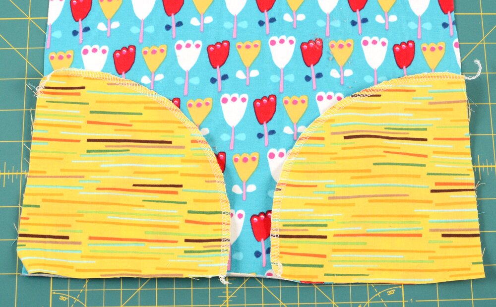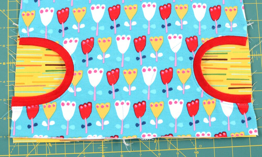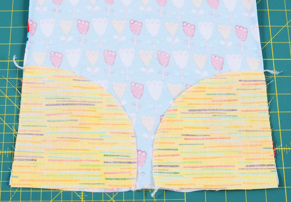 Sew along the edge of the pocket backing. I like sewing from the top, it seems to look nicer for me but you can sew from the back if that’s easier. They should both have a nice looking arc after you sew them on.
