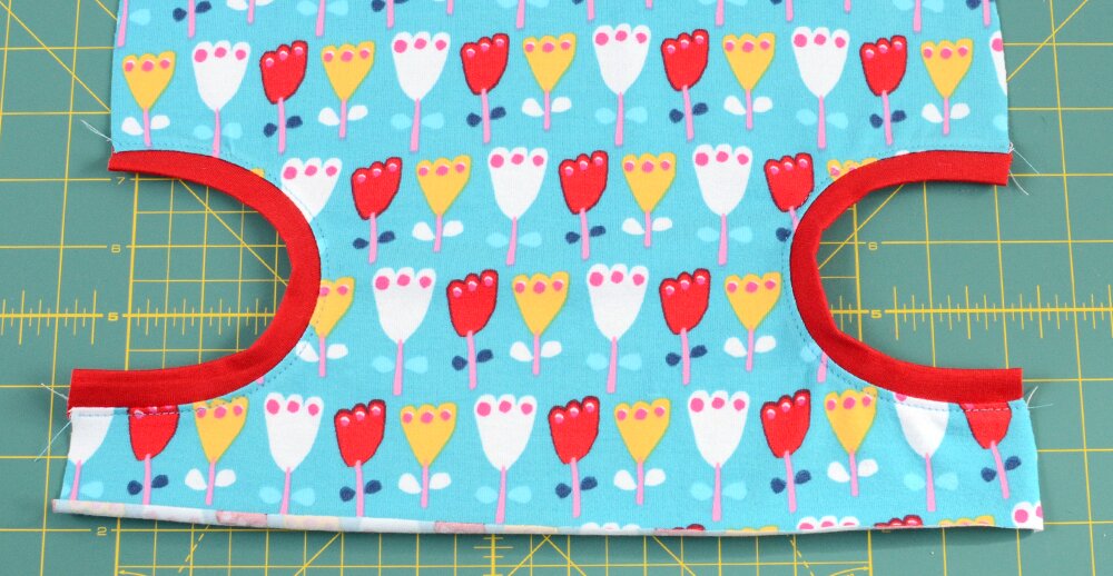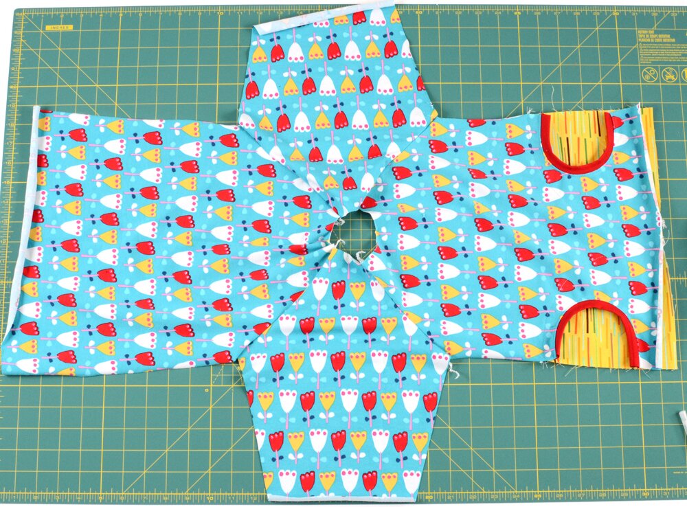 Continue sewing the dress as usual now. Sew the sleeves to the front and back, sew down the side seams.
