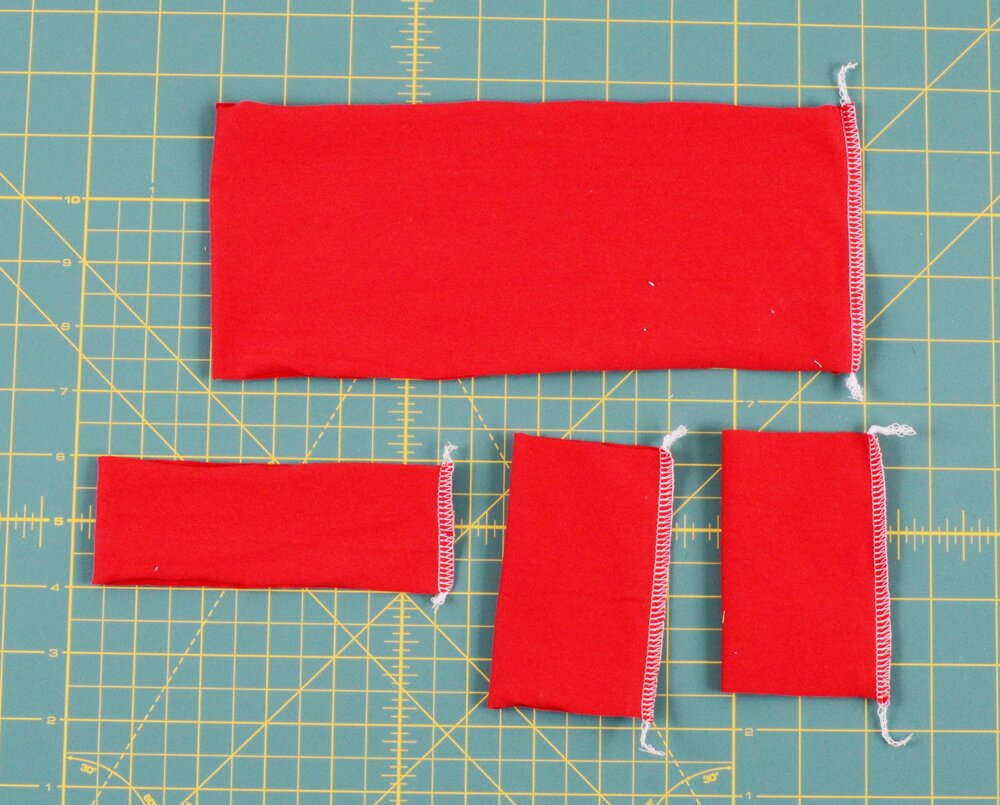 Sew the cuffs and bands closed and serge them to the sleeves, waist and neck.