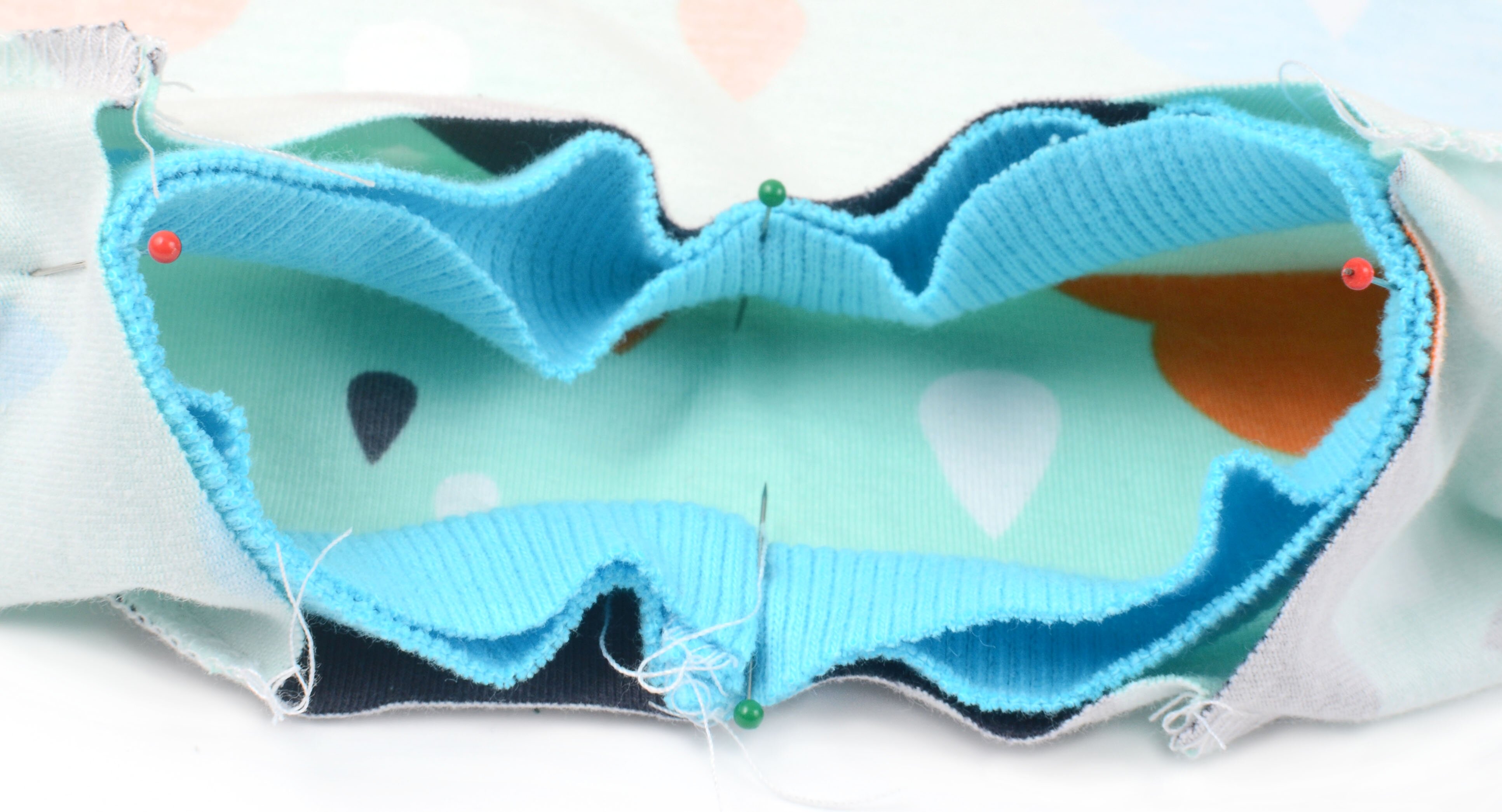 Getting the sleeves sewn on is the first step. The tutorial will give more direction on all these steps. Basically, the short edge of the sleeve cap gets sewn to the front arm of the body. The taller edge of the sleeve cap gets sewn to the back arm of the body.