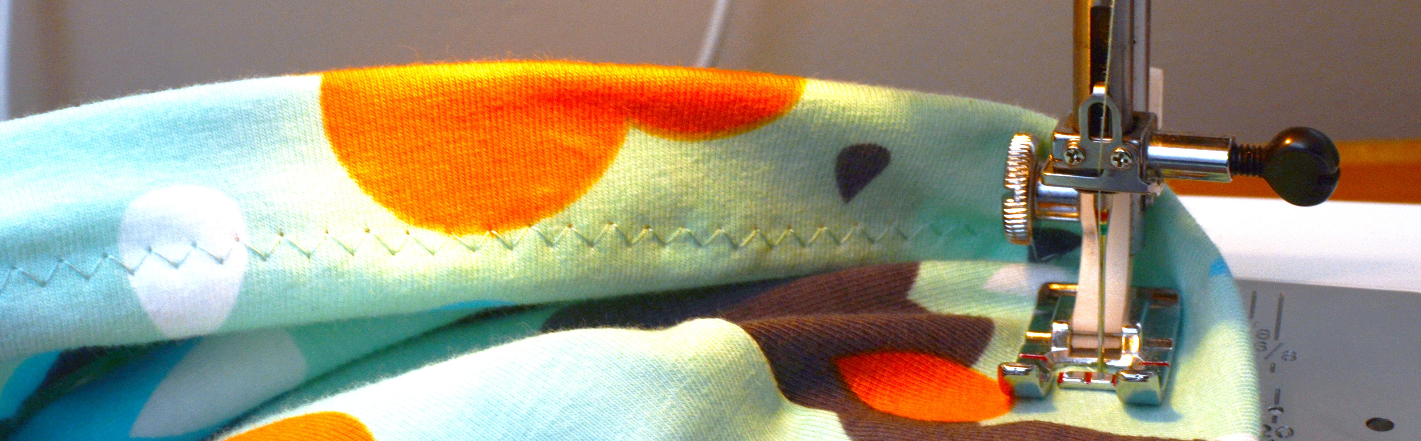 I like hemming the sleeves before sewing the side seam on this one. The sleeve hem gets folded up 3/4″ and zig-zag stitched across the top.