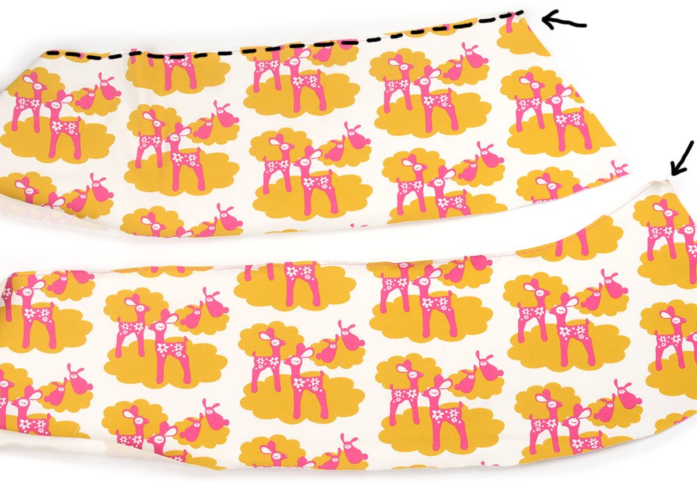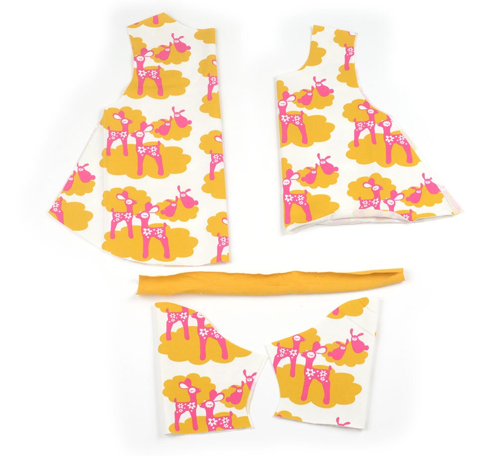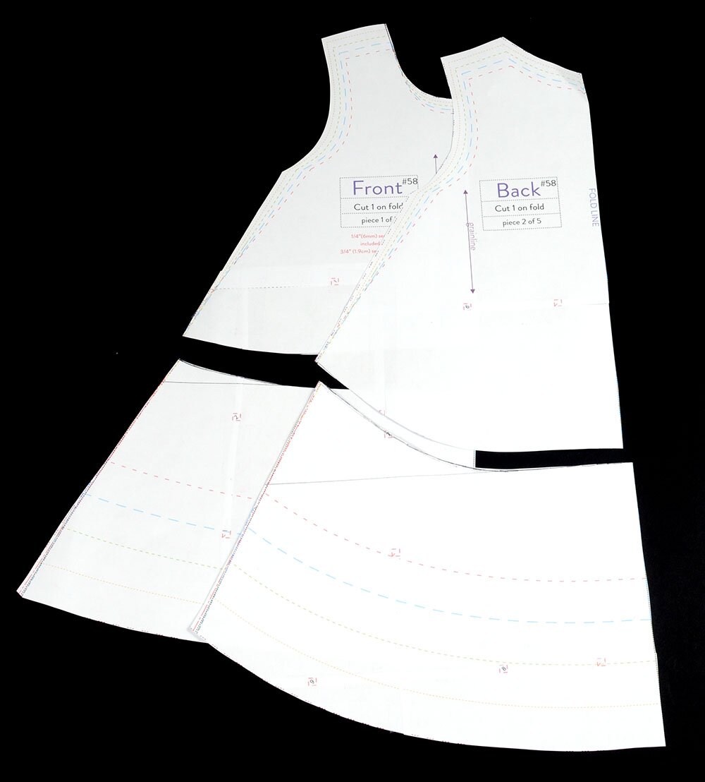 Start by taking the front pattern piece of the dress and measuring about half way between the neck and hem.
