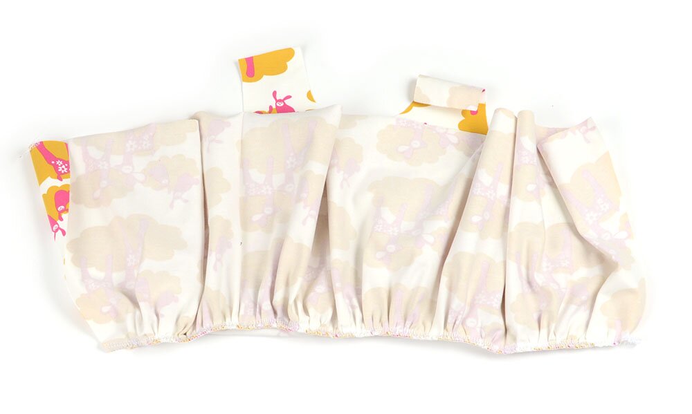 Flip it up to the top so the wrong side is showing. Pin the gathered edge along the top edge in several places.