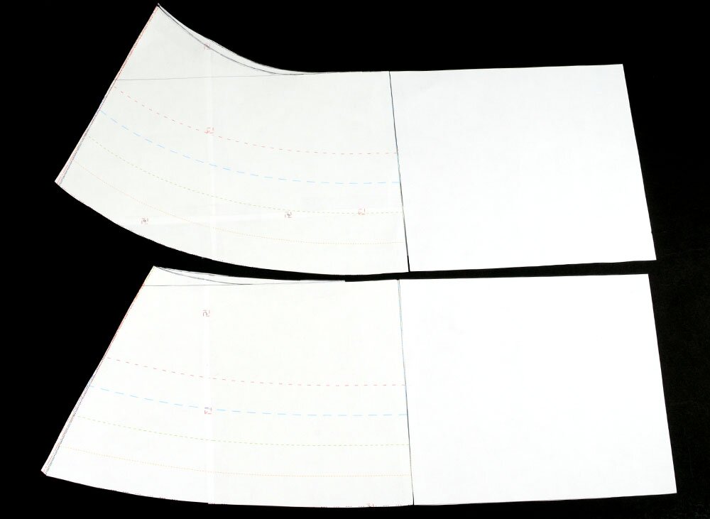 Here are the bottom pieces cut out on the fold with the new pattern piece.
