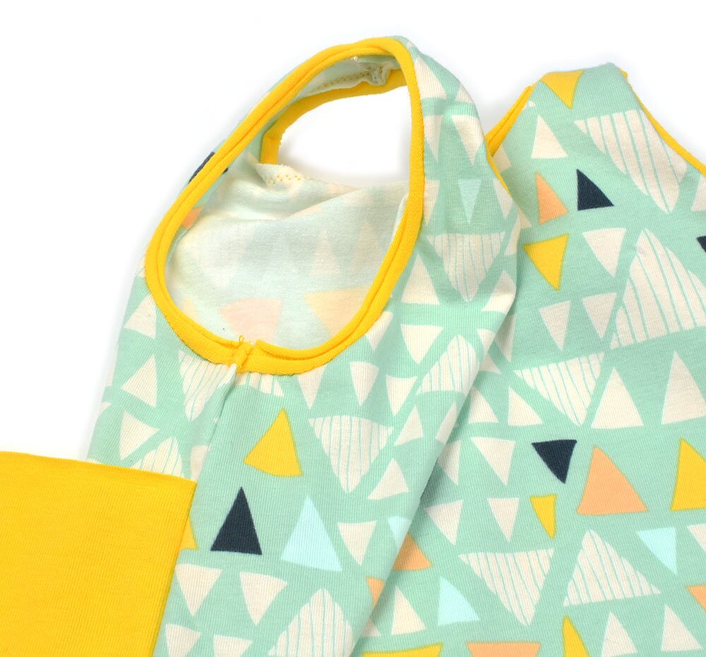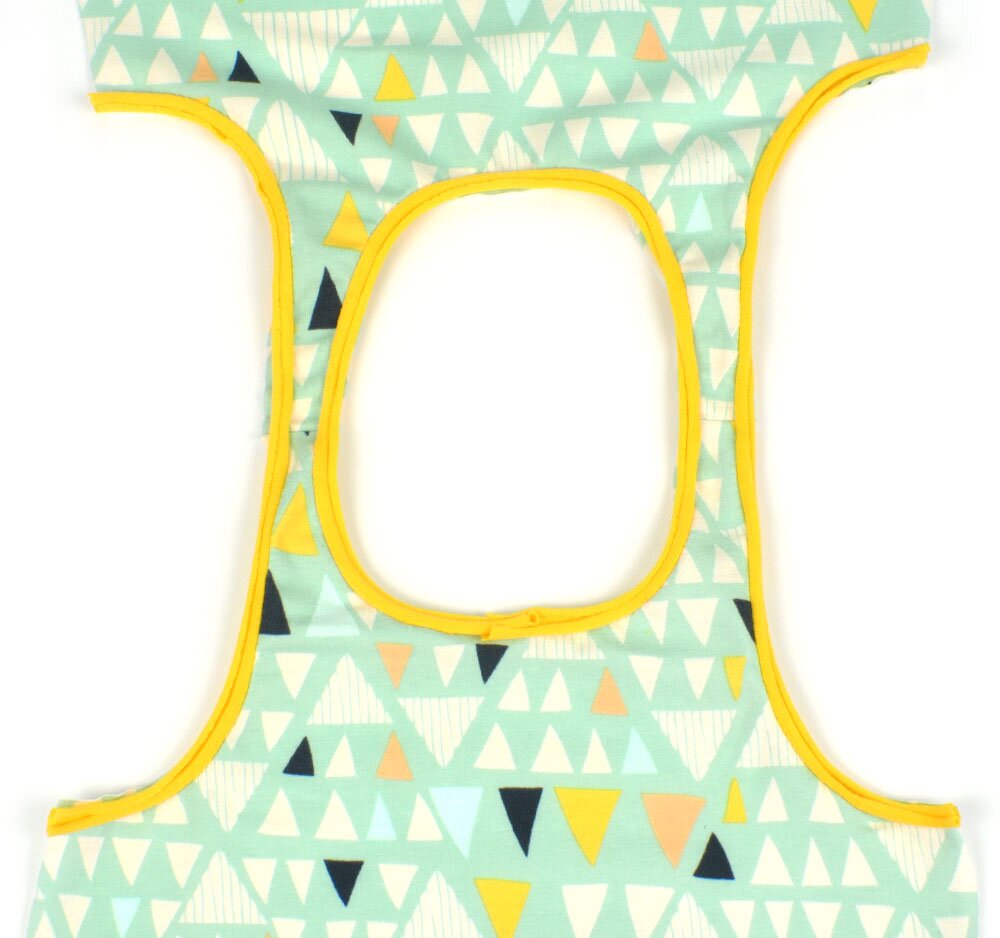 Take if from me, this is easy to put together! The only new part you’ll notice is the way the binding is sewn. You might have to take one practice try before the real thing but then, it’s really easy 🙂 AS LONG AS YOU USE THE RIGHT FABRIC!! A less stretchy, thinner, jersey knit fabric works the best. Anything with a lot of stretch gets really difficult. Try anything you want though, I have made it work with a stretchy one.
