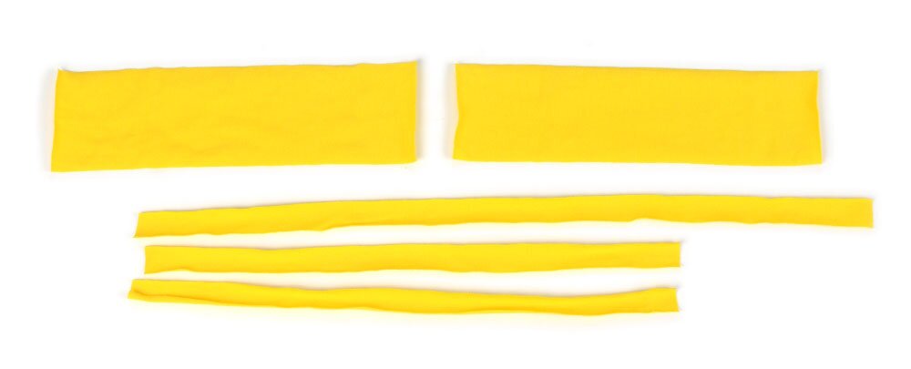 Photo 1: The pieces cut out. Front, back, fringes and bindings. The bindings are only 3/4″ in this pattern because they aren’t folded over.