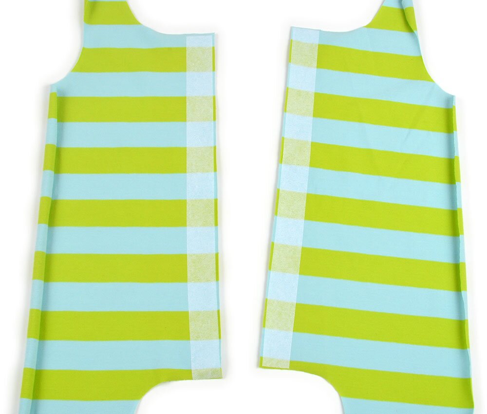 After the pieces are cut out, you will iron a piece of interfacing to the center front edges. Or you can use a piece of woven fabric.