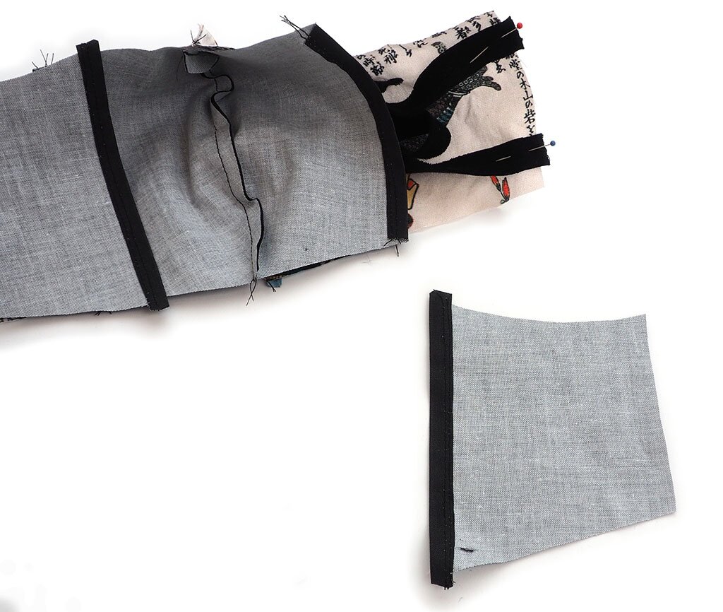 Straight stitch the casing down the (photo) right side and across the bottom, leaving the left side open to insert the piece