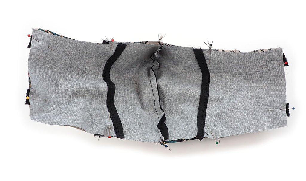 If using loops, pin them to the edges of the face as shown, a little more than 1/4″ below the edges to allow for the seam allowance
