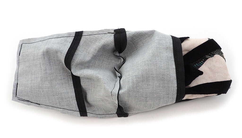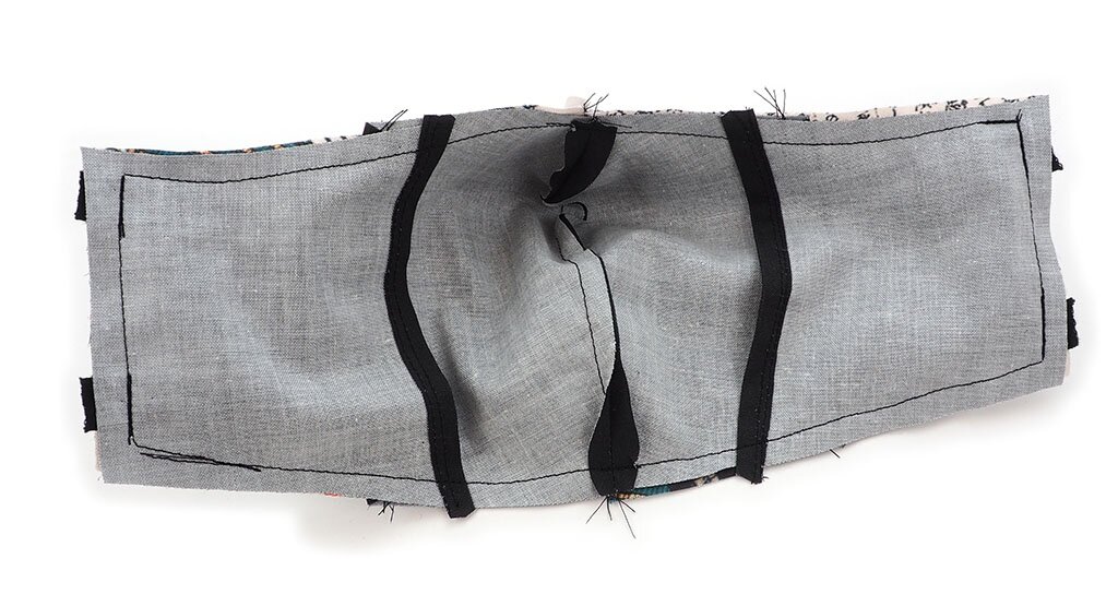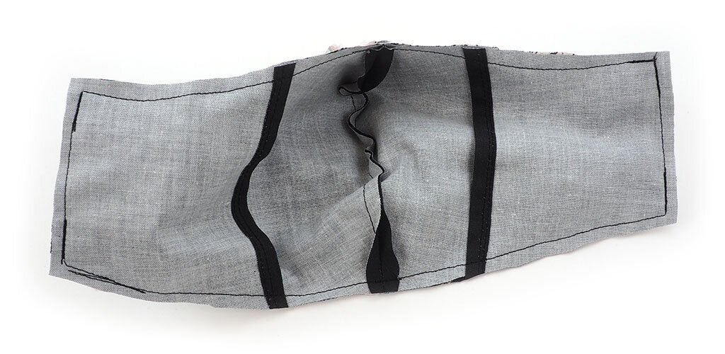Turn the mask right side out. You can use this filter are with a custom material or just layer another piece of fabric in there if you like. You can stop and be done here or continue to create a space for a metal piece for the nose!